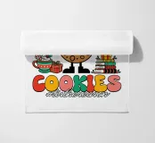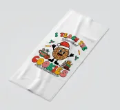 Un allegro biscotto con un cappello da Babbo Natale è circondato da decorazioni festive, libri e cioccolata calda. La scritta "Insegno ai biscotti più intelligenti #tistheseason" aggiunge un messaggio giocoso e a tema natalizio.