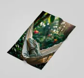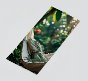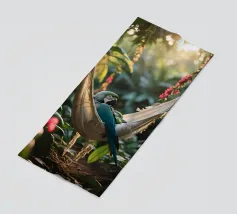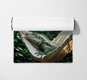 Questa iguana giace immobile sulla sua amaca, come se avesse deciso di non fare nulla oggi. Il sole filtra attraverso il verde, il tempo sembra essersi fermato. Un poster perfetto per ricordarvi che è giusto non fare nulla per un po', e che è bene tenersi l'estate ancora per un po'. Questa stampa fa parte della serie "Jungle Hammock Tales" - il relax estivo con una strizzatina d'occhio. Questa illustrazione digitale è stata creata in stile fotorealistico, con un occhio di riguardo per la luce, i dettagli e l'atmosfera. Visualizzata da Trinkets NL Design Studio utilizzando l'AI.