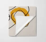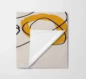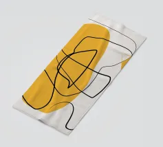 This abstract artwork feels like a spontaneous, improvisational sketch. Flowing black lines and scribbles interplay with a block of warm yellow and a textured beige background, creating a piece that explores movement, line, and form with a free, expressive energy.