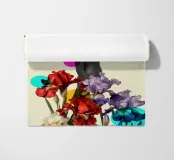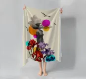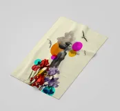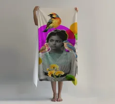 Un collage floreale surreale che raffigura una donna serena con i capelli che si trasformano in nuvole, circondata da leggiadri gabbiani e audaci iris. Vibranti forme geometriche contrastano con elementi monocromatici, creando un equilibrio onirico tra natura, pensiero ed emozione. Un'opera di grande impatto per gli amanti dell'arte contemporanea.