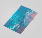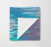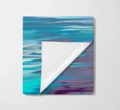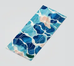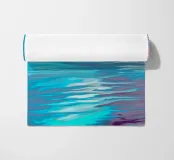 Un'arte astratta fluida e sorprendente, ispirata all'energia dell'oceano, con flussi di colore in blu acqua, rosa pastello e bianco.