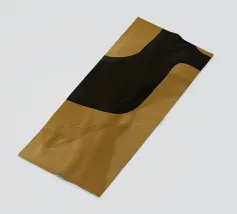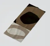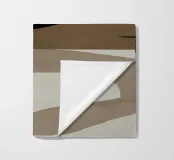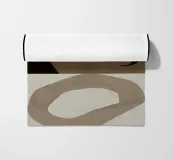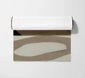 Una coppia di forme astratte domina la composizione con un netto contrasto di sfondi scuri e chiari. La metà superiore mostra una forma marrone scuro su uno sfondo nero, mentre la metà inferiore presenta una forma marrone più chiara su uno sfondo bianco.
