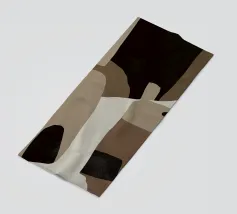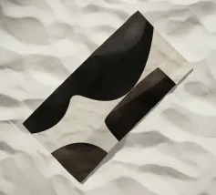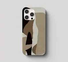 Un disegno astratto con sfumature di marrone e nero crea la silhouette del profilo laterale di una persona. L'approccio minimalista utilizza blocchi di colore distinti e sfumature delicate per suggerire la forma.