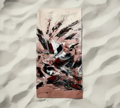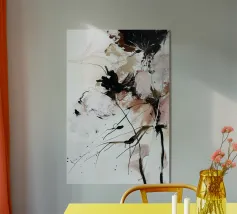 Un'energica composizione astratta guidata da gesti istintivi e movimenti spontanei. Audaci pennellate nere tagliano i morbidi strati di bianco, beige e toni tenui del blush, mentre schizzi e gocce introducono un ritmo crudo ed emotivo. Il contrasto tra il movimento fluido e le texture consolidate crea un senso di tensione e libertà, rendendo l'opera ideale per stampe d'arte di grande formato, interni contemporanei, gallerie moderne o usi editoriali.