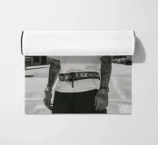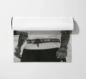 Kane fixe l’objectif sans ciller. Ici, chaque regard est une déclaration de guerre. Son t-shirt blanc surplombe une ceinture griffée, ses chaînes brillent sous le soleil pâle. Il connaît les règles du jeu : ne jamais baisser la tête, ne jamais montrer les crocs pour rien. Il est calme, mais personne ne veut savoir ce qu’il se passe quand il ne l’est plus.