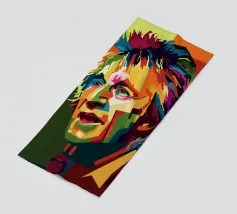 Keef in stile WPAP è un ritratto vibrante e geometrico del leggendario chitarrista dei Rolling Stones. Utilizzando forme audaci e spigolose e una tavolozza di colori sorprendente, l'opera d'arte cattura i suoi lineamenti robusti, la sua espressione iconica e la sua personalità rock 'n' roll. La tecnica WPAP (Wedha's Pop Art Portrait) enfatizza i contrasti netti e la composizione dinamica, riflettendo il suo spirito energico e ribelle.
