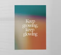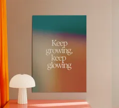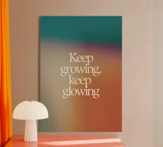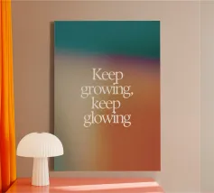 Un design stimolante e vivace con la frase "Keep Growing, Keep Glowing", che vi ricorda di evolvervi continuamente e di brillare con fiducia. La tipografia audace e il messaggio edificante servono come affermazione quotidiana, incoraggiando la crescita personale, la positività e l'amore per se stessi. Con una tavolozza di colori vivaci ed energici, questa opera d'arte aggiunge un tocco di motivazione e luminosità a qualsiasi spazio. Perfetta per le camere da letto, gli uffici o qualsiasi area che necessiti di un po' di incoraggiamento e positività. È un'aggiunta meravigliosa a opere d'arte da parete, poster, capi d'abbigliamento e altro ancora!