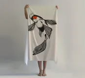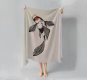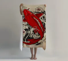 Design con pesce koi in stile linoleografico