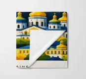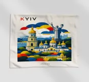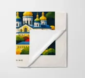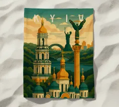 Una celebrazione audace e grafica di Kiev, resa attraverso una geometria pulita e un color blocking deciso. I monumenti iconici si ergono in un'armonia stratificata, combinando l'architettura storica e il simbolismo nazionale in una composizione equilibrata ed edificante. Le forme strutturate e i contrasti vivaci trasmettono forza, tradizione e resilienza senza ricorrere a dettagli raffinati.