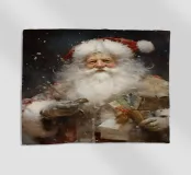 Un dipinto festivo pieno di magia natalizia: Babbo Natale con il suo sorriso raggiante porta tra le braccia regali amorevolmente incartati. La neve turbina nell'aria e conferisce alla scena un'atmosfera vivace e invernale. I colori caldi e i dettagli raffinati catturano magnificamente la gioia e la magia del periodo natalizio.