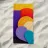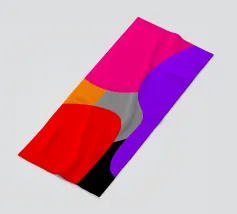 Vibranti forme geometriche in viola, rosso, giallo e blu si sovrappongono su un audace sfondo giallo e scuro, mostrando un'arte astratta dal tocco moderno.
