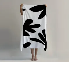 Questa opera d'arte con motivo a foglie in bianco e nero è un pezzo di grande impatto visivo. L'opera presenta un motivo ripetuto di forme e disposizioni di foglie stilizzate. L'artista (kathrinmay) ha utilizzato il contrasto dei due colori per creare un senso di equilibrio.
