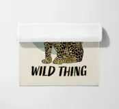 Bellissimo leopardo disegnato a mano dall'aspetto maestoso. Grande texture color oro. Cerchio retrò con riflessi dorati sullo sfondo. Grafia casual per Wild Thing. Per gli avventurieri, gli amanti della natura, gli appassionati di stampe animali, gli amanti degli animali. Un grande disegno e un grande motivo di poster.