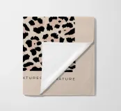 Una texture ispirata alla fauna selvatica caratterizzata da un audace motivo a macchie di leopardo in antracite intenso e pesca tenue, ideale per una parete galleria contemporanea ispirata al safari.