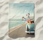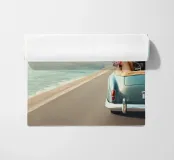 Sperimentate la massima libertà e avventura con le nostre opere d'arte vintage. Sentite il sole sulla pelle mentre guidate lungo la costa in una classica decappottabile. Immaginate il vento tra i capelli mentre una pattinatrice spensierata scivola sull'oceano. Questo capolavoro cattura la nostalgia di un viaggio in auto retrò e vi avvicina alla bellezza di una vita senza limiti. Perfetto per ogni appassionato di arte e avventura".