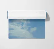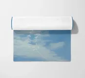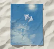 Un'illustrazione sognante e piena di luce di due aquiloni bianchi che si librano in un cielo azzurro, con delicate code di nastro che scivolano vicino al sole splendente. Con una texture pastello e una tavolozza pacifica, quest'opera d'arte cattura l'essenza della libertà, della nostalgia e della gioia tranquilla. Perfetto per asili nido, spazi ariosi e per chiunque sia attratto da scene di serenità edificanti e minimaliste.