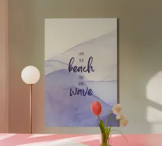 Un design che si adatta al motto della vita. LA VITA È UNA SPIAGGIA. TROVA LA TUA ONDA. La vita è bella. Trova la tua strada, anche se a volte è un po' turbolenta. Una tipografia minimalista con un tocco di colore colorato addolcisce la vostra giornata.