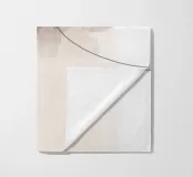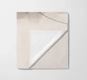 Opera d'arte minimalista caratterizzata da morbide pennellate beige, nere e bianche con una sottile linea curva che crea un'estetica moderna.