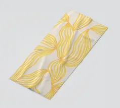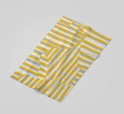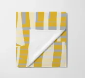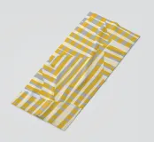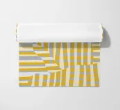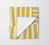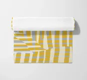 Le strisce gialle e grigie si intersecano per formare un motivo a griglia dinamico, creando un senso di profondità e movimento nella composizione. Le linee sovrapposte e le varie tonalità conferiscono al pezzo un'atmosfera geometrica e astratta.