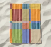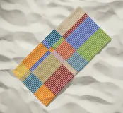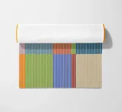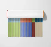 Un motivo geometrico di grande impatto, caratterizzato da sottili strisce verticali in tonalità vivaci di rosso scuro, blu, verde, rosa, giallo e arancione su un morbido sfondo beige. Questo disegno crea un dinamico effetto patchwork con un giocoso gioco di colori e un'estetica moderna di ispirazione Bauhaus. Perfetto per ravvivare l'arredamento della casa, gli accessori, l'abbigliamento e molto altro ancora, grazie al suo fascino pulito e contemporaneo e al vivace stile a righe!