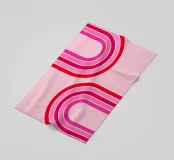 design retrò, arte geometrica, arredamento rosa, curve astratte, combinazione di colori vivaci, stampa grafica moderna