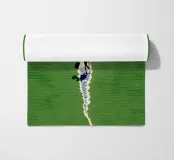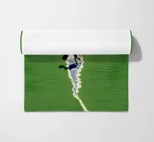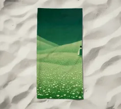Un'unica figura cammina a piedi nudi su un'enorme superficie verde, ma la sua traccia è fatta di acqua scintillante. Lo stretto sentiero d'acqua attraversa il quadro come una crepa nella vita quotidiana, permettendo alla realtà e al surrealismo di confluire l'uno nell'altro. Con passo deciso, la figura incarna la libertà, l'insolito e l'arte di trovare la propria strada.