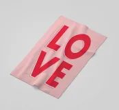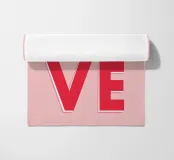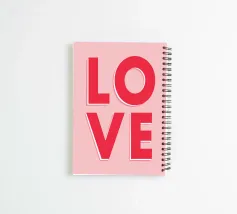 Un design audace e senza tempo che presenta la parola "LOVE" in grandi lettere maiuscole, con ogni lettera dallo stile unico: una piena di rosso vibrante, un'altra con una sfumatura di rosa e oro, una ornata da motivi floreali e l'ultima con un effetto neon luminoso. Lo sfondo è morbido e sognante, con cuori e scintille sottili, che irradiano calore, passione e positività.