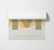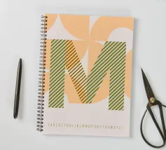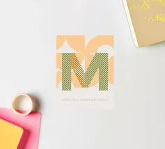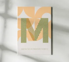 M-TYPEFACE in un design senza tempo - poster tipografico con colori vivaci e un gioco di forme sullo sfondo.