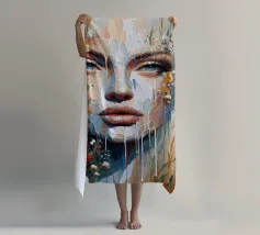 Pittura di onde sul volto di una donna.
