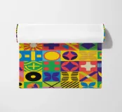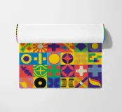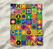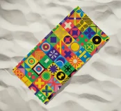 Un motivo complesso e vivace composto da una griglia di piastrelle geometriche, ognuna con un disegno e una combinazione di colori unici, che creano una matrice visiva sorprendente.