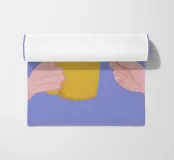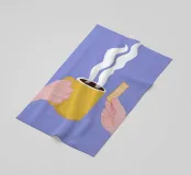 Un'illustrazione semplice e confortante di una mano che tiene una tazza gialla e calda di caffè o tè fumante, con un biscotto pronto per essere inzuppato. L'immagine cattura perfettamente il piacere semplice e tranquillo di un rituale mattutino.