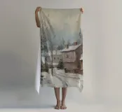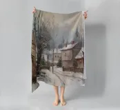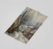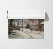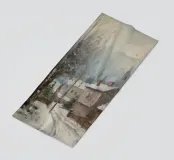 Una pittoresca mattina d'inverno in un tranquillo villaggio: le case coperte di neve, gli alberi slanciati e le lontane guglie delle chiese si stagliano dolcemente nella luce bluastra. Il sentiero tra la neve conduce l'occhio attraverso il tranquillo scenario ed evoca ricordi di tranquille giornate invernali. Il dipinto unisce nostalgia, tranquillità e bellezza naturale in colori armoniosi e pennellate raffinate.