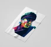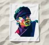 Miles Davis nello stile WPAP è ritratto con forme audaci e angolari e una vibrante esplosione di colori contrastanti. Il suo sguardo intenso, gli zigomi alti e la sua caratteristica tromba sono stilizzati con precisione geometrica, catturando il suo spirito innovativo e ribelle. La composizione, astratta ma riconoscibile, riflette la sua leggendaria influenza sul jazz, fondendo l'estetica moderna della pop-art con l'energia dinamica della sua musica.
