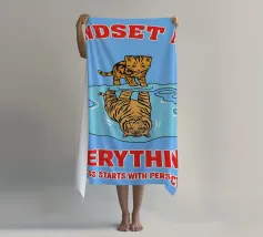 This motivational artwork features a small kitten gazing into a puddle, where its reflection shows a powerful tiger. With the inspiring quote “Mindset is Everything – Progress Starts with Perspective,” it symbolizes confidence, self-belief, and growth. A perfect reminder that perspective shapes potential and dreams begin with mindset.