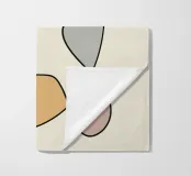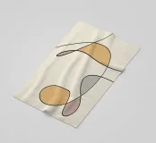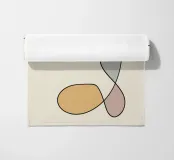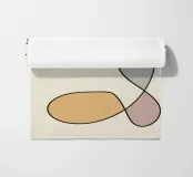 Un insieme di forme astratte nei toni della terra sovrapposte a linee sottili e scure crea un design moderno e minimalista. La composizione è calma ed equilibrata e l'uso dello spazio negativo contribuisce alla semplicità complessiva.
