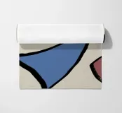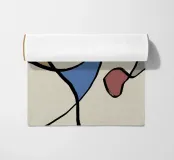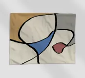 Linee e forme astratte creano una composizione minimalista dai colori tenui, con contorni neri decisi che definiscono le forme organiche. Uno sfondo chiaro esalta il contrasto tra i toni della terra e i tenui colori pastello.