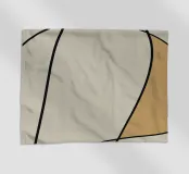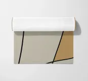 Linee e forme astratte si intrecciano in una composizione minimalista, caratterizzata da morbide tonalità di grigio, beige e rosa. Lo sfondo è di un delicato bianco sporco, che fa risaltare le linee curve.