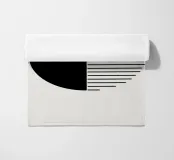 Opera d'arte geometrica minimalista con linee nere e un semicerchio nero su uno sfondo beige neutro e morbido. Opera d'arte astratta e moderna con texture morbide per gli stili di interni Bohemien, Moderno, Industriale e Basic. Bella per il soggiorno, lo studio o l'ufficio.