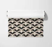 L'immagine presenta un motivo geometrico ripetuto di archi a zigzag in una combinazione di colori neutri. La simmetria crea un senso di equilibrio e ritmo.