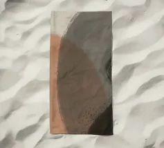 Opera d'arte moderna e astratta con giochi di forme e texture in toni di colore tenui come beige, giallo tenue, blu-grigio, marrone-rosso e con una linea di pennello nera. Le diverse forme organiche, le linee, le texture e le pennellate conferiscono un aspetto interessante che attira l'attenzione. Per una vita bohémien, new country, basic, industriale, naturale e scandinava. Arricchite i vostri interni con questa creazione versatile, che aggiunge un'espressione estetica artistica al vostro spazio abitativo.