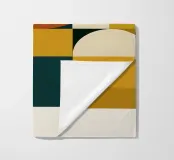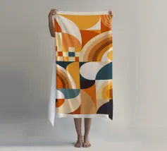 Un moderno design astratto che combina audaci forme geometriche con una tavolozza di colori caldi di ispirazione rétro. Perfetto per aggiungere un tocco di eleganza moderna di metà secolo a qualsiasi spazio abitativo o ufficio.