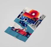 Formula Race Car Monaco Scene - Retro Graphic Design.