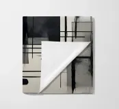 Arte astratta monocromatica - Suite di 2 pezzi intitolata Caos e Struttura - questo è il pezzo 2 di 2. L'opera gioca con i contrasti - luce e buio, movimento e immobilità, precisione e spontaneità - suscitando un senso di tensione e intensità controllata. La tavolozza in scala di grigi ne amplifica l'atmosfera moderna e industriale, pur lasciando spazio all'interpretazione personale.