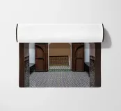 Interni marocchini. Piastrelle colorate e decorazioni arabe. Architettura marocchina.
