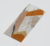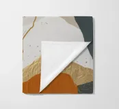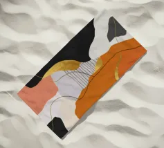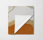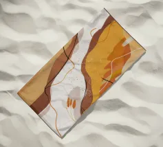 Le macchie strutturate in tonalità calde evocano un deserto mutevole in rilievo astratto.