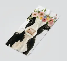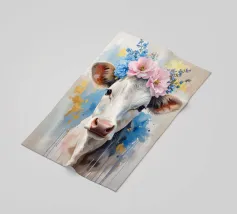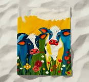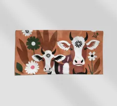Mucche colorate in un prato di fiori selvatici.