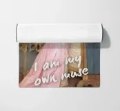 Celebrate l'autoispirazione con "I Am My Own Muse". Questa accattivante stampa pop art offre una potente rivisitazione di un dipinto classico, con una donna elegante in un fluente abito rosa che bacia teneramente il proprio riflesso in uno specchio dorato. Il testo bianco e deciso "Sono la mia musa" sovrasta l'immagine, trasformando questa scena senza tempo in una profonda dichiarazione di fiducia in se stessi e indipendenza artistica. I cuori disegnati a mano in alto aggiungono un tocco contemporaneo e affettuoso. Perfetto per celebrare la cura di sé e l'emancipazione in qualsiasi interno moderno. Realizzato con un'eccezionale risoluzione di 7000x5000 pixel.