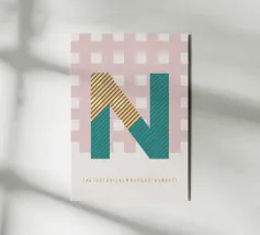 N-TYPEFACE in un design senza tempo - poster tipografico con colori vivaci e un gioco di forme sullo sfondo.