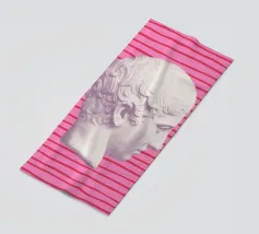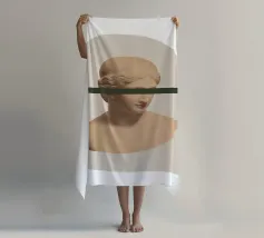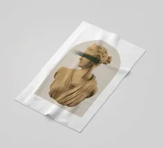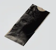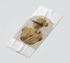 Un volto stilizzato ispirato ai busti antichi, attraversato da circuiti luminosi. Il passato incontra la tecnologia.