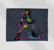 Un'illustrazione contemporanea e grintosa, ricca di carattere, movimento e colore. Una figura sicura di sé è raffigurata a metà passo, la sua silhouette si staglia in netto contrasto su uno sfondo tenue, mentre pigmenti neon esplodono sul suo corpo come energia allo stato puro. Segni simili a graffiti, schizzi e simboli sfumano il confine tra moda, arte di strada ed espressione, conferendo all'opera un ritmo inquieto e ribelle.